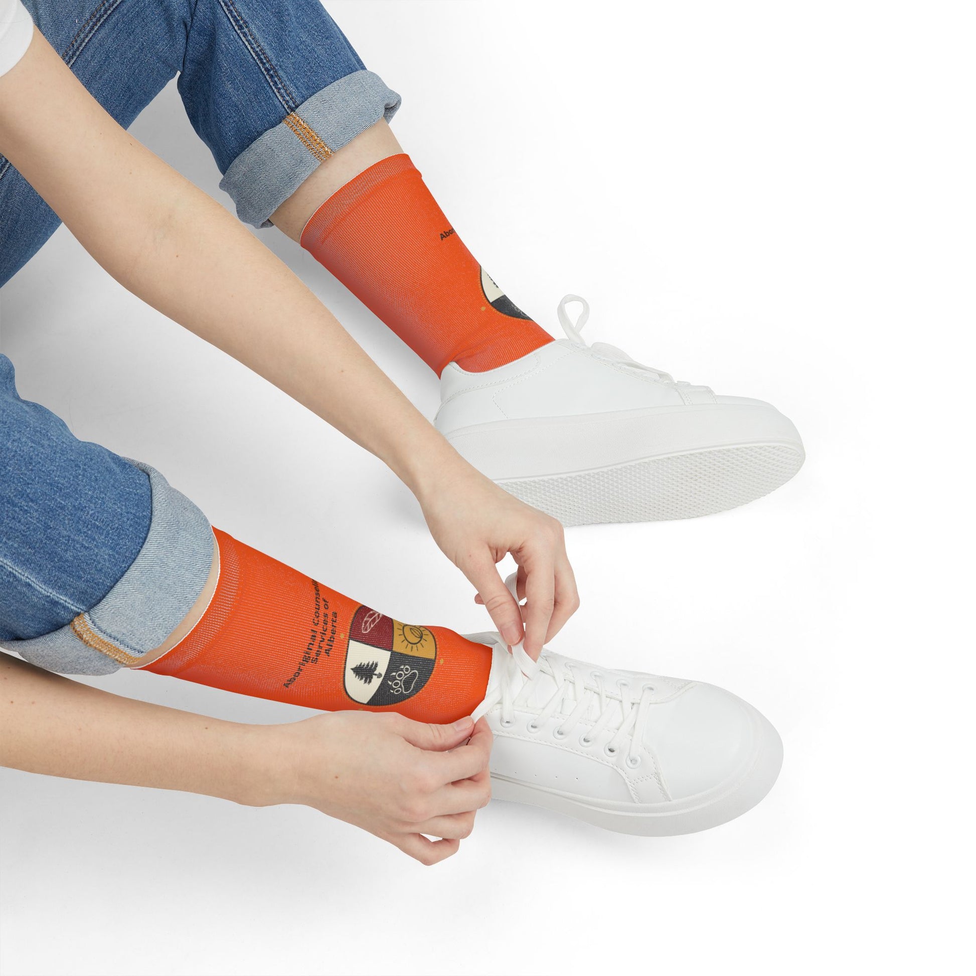 Orange Crew Socks with Small Circular Emblem — Sublimation Athletic Socks